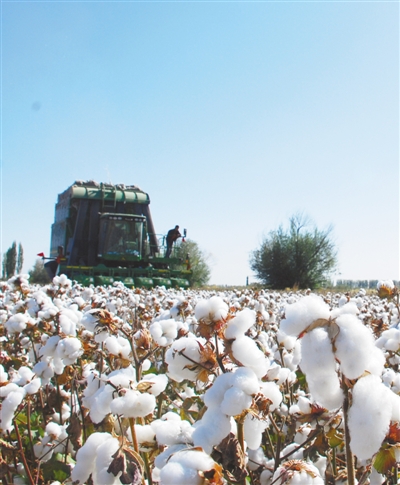 機械化采棉一景。呂大剛 攝