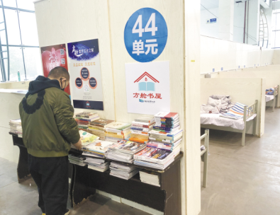 湖北省圖書館參與建設(shè)了13家方艙書屋,圖為書屋內(nèi)景。