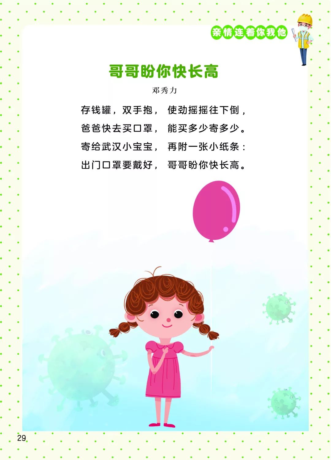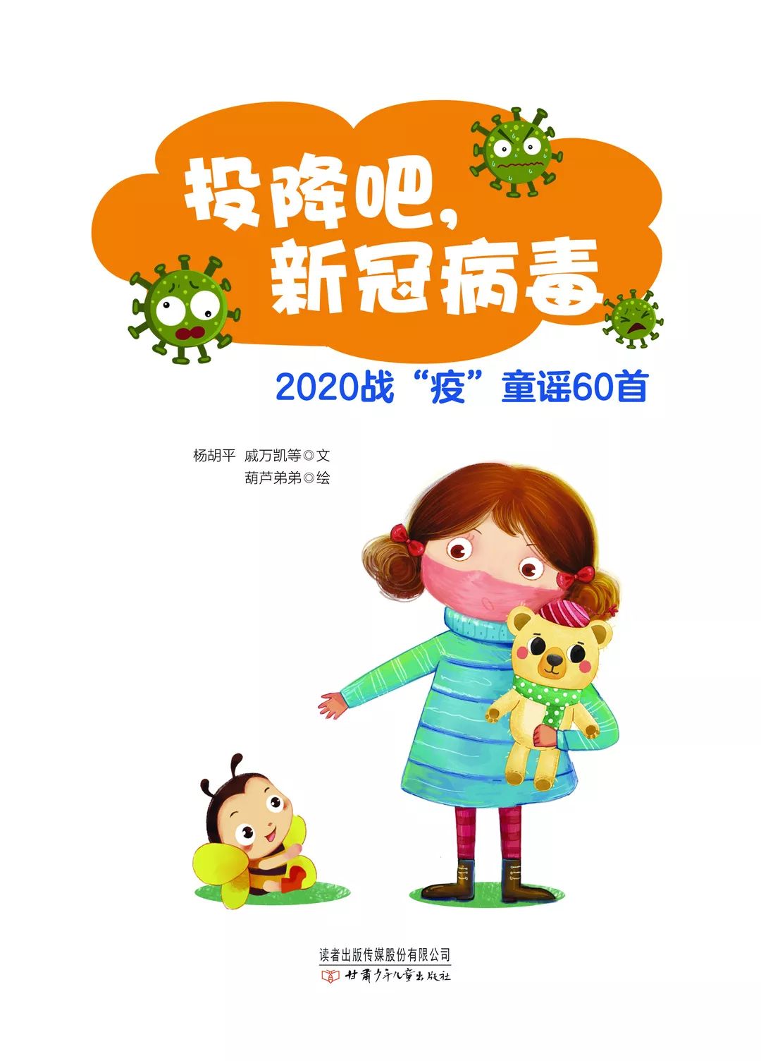 讀者出版?zhèn)髅焦煞萦邢薰舅鶎俑拭C少年兒童出版社積極響應(yīng)、主動作為,聯(lián)合“葫蘆文產(chǎn)”,策劃了《投降吧,新冠病毒——2020戰(zhàn)“疫”童謠60首》一書,將這些優(yōu)秀的童謠作品進(jìn)行編輯加工,以期提高兒童科學(xué)防護(hù)意識,幫助大家堅定抗“疫”勝利的信心。本書通過數(shù)字版向讀者免費推送,為打贏這場疫情防控阻擊戰(zhàn)貢獻(xiàn)一份力量。