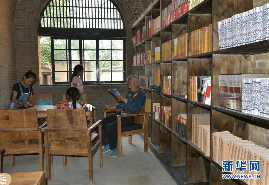 老苗書館就是在其中一處窯洞上修建而成。“這個(gè)院子共有8口窯洞組成,一百多年前由一戶苗姓人家修建,所以取名老苗書館。”51歲的苗樹生是書館的第一任館長,也是建設(shè)者之一。“我們是24小時(shí)開放,村民可以把書拿回家,還可以把家里的書拿來換著看,整個(gè)書館藏書5萬多冊,很多都是黨員干部和志愿者捐來的。”苗樹生說。