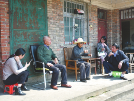 劉道云(右一)為寫作《第一書記:精準扶貧的“一線戰(zhàn)斗員”》,深入基層一線傾聽群眾心聲。