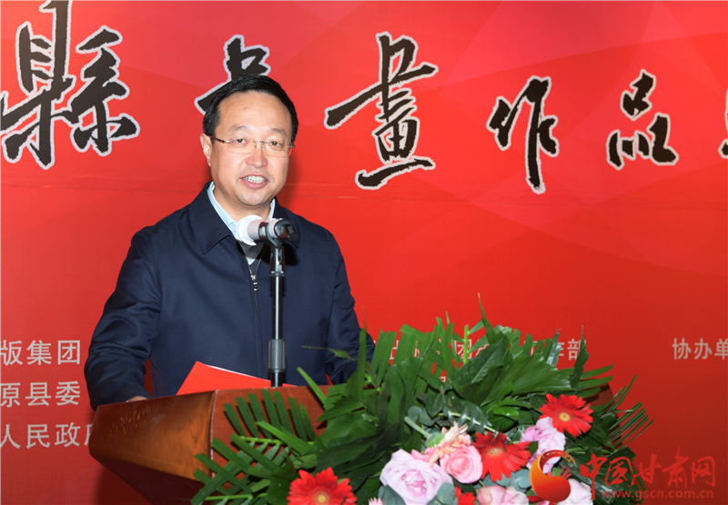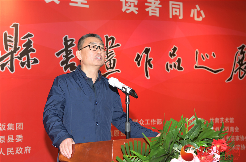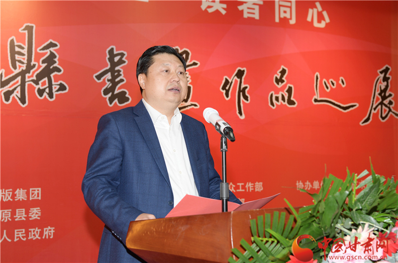劉永升在致辭中說,鎮(zhèn)原是中國書法之鄉(xiāng),讀者是甘肅文化名片,企縣因扶貧而結(jié)緣,因文化而牽手。自2017年定點(diǎn)幫扶鎮(zhèn)原以來,讀者出版集團(tuán)著力實(shí)施了一批“看得見、摸得著、留得下、有成效”的好項(xiàng)目,探索出一條富有“讀者”特色的幫扶路子。特別是立足文化企業(yè)定位,堅(jiān)持扶智扶志,通過開展勞動技能培訓(xùn)、幫助改善教育條件、推介宣傳地方資源、建設(shè)“讀者鄉(xiāng)村文化驛站”等一系列卓有成效的工作,切實(shí)打好“文化扶貧”牌,既堅(jiān)定了廣大群眾戰(zhàn)勝貧困的信心和決心,更激發(fā)了貧困群眾依靠雙手、勤勞致富的積極性、主動性。此次與鎮(zhèn)原縣聯(lián)合舉辦書畫巡展,是開展文化扶貧、助力書香社會建設(shè)的務(wù)實(shí)之舉,也是提升“文化鎮(zhèn)原”影響力、加快地方文化產(chǎn)業(yè)發(fā)展的積極行動,更是提高貧困群眾文化素質(zhì)、振奮群眾精神風(fēng)貌的重要舉措。