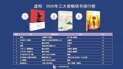同時,2020年整體市場缺乏亮眼的暢銷書,銷量百萬以上的圖書品種由2019年的49種下降至2020年的24種,榜單仍以經(jīng)典常銷圖書和暢銷系列為主?!都t巖》成為虛構(gòu)類第1名,同時也是總榜榜首?!对七呌袀€小賣部》和《三體》分別位列第2名和第3名。非常眼熟是不是?在非虛構(gòu)圖書中,引進的《你當像鳥飛往你的山》排名第一。少兒類第1名《夏洛的網(wǎng)》是2014年8月上市的,截至目前該書上榜已有133次。少兒榜和虛構(gòu)榜沒有新書進入2020年榜單前10,非虛構(gòu)只有《國家安全知識百問》1本進入。就是說,整個零售市場的大半江山都依賴于老書。