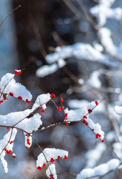 許多人走到這里,停下了腳步,被這雪后滿樹熱烈的紅色吸引。風(fēng)在這個時刻,沒有了聲息,似乎是因為這一簇炫目的紅。天空是清澈透明的藍(lán),空氣中彌漫著清冽的干枯植物的氣息,這氣息來自頂著雪花的干草、沉睡的樹木、滄桑的松柏、埋藏在雪下的紅隼的羽毛、雨燕干燥的糞便,以及鳥雀熱愛的金銀木酸甜可口的果實(shí)。