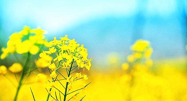 故鄉(xiāng)的油菜種植一般是在秋季,將上好的田地犁成一垅垅的長(zhǎng)條狀,寬約一米多,地垅之間留一條小溝,以便排水之用。種植時(shí),將長(zhǎng)條地垅平整好,地垅兩邊低中間略高,再用鋤頭農(nóng)具根據(jù)間距大小一排一排地挖淺坑,土淺坑里放上十幾粒油菜籽種,再抓一把草木灰掩蓋住,大約十天左右時(shí)間,油菜芽便鉆了出來(lái)。油菜花的田間管理非常重要,除及時(shí)補(bǔ)苗外,期間還要鋤幾次雜草,施幾次農(nóng)家肥(或化肥)。兒時(shí),一到放寒假或禮拜天,我們這些十來(lái)歲大的孩子便幫助家里人去油菜地里拔雜草。油菜花最旺的生長(zhǎng)季節(jié)是在春節(jié)過(guò)后,此時(shí)春色春風(fēng)春光春雨,長(zhǎng)勢(shì)一天一個(gè)樣,尤其是每次“貴如油”的春雨下過(guò)后,陽(yáng)光下的油菜郁郁蔥蔥,在春雨的浸潤(rùn)中越發(fā)嬌嫩,水淋淋的姿態(tài),圓圓的水珠在嫩葉上滾動(dòng)。