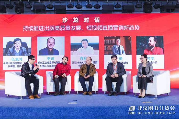 沙龍對話環(huán)節(jié)中,生活·讀書·新知三聯(lián)書店總編輯肖啟明,機(jī)械工業(yè)信息研究院院長、機(jī)械工業(yè)出版社社長李奇,華東師范大學(xué)出版社董事長、社長王焰,國家一級作家雪漠,共同探討短視頻直播營銷心得、經(jīng)驗及趨勢。
