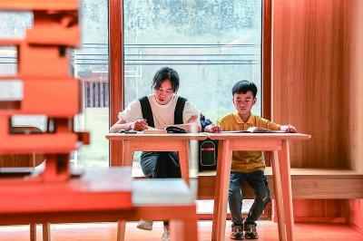 5月8日,一對(duì)母子在福建省晉江市東石鎮(zhèn)“母親的房子”圖書(shū)館內(nèi)閱讀。今年5月,福建省晉江市東石鎮(zhèn)“母親的房子”圖書(shū)館正式對(duì)外開(kāi)放。“母親的房子”是福建省晉江東石籍作家蔡崇達(dá)《皮囊》書(shū)里所描述的一座房子?,F(xiàn)在,這座房子被他改造成了一座現(xiàn)代風(fēng)格與閩南特色相融合的公益圖書(shū)館,成為當(dāng)?shù)毓参幕囊徊糠?。新華社發(fā)