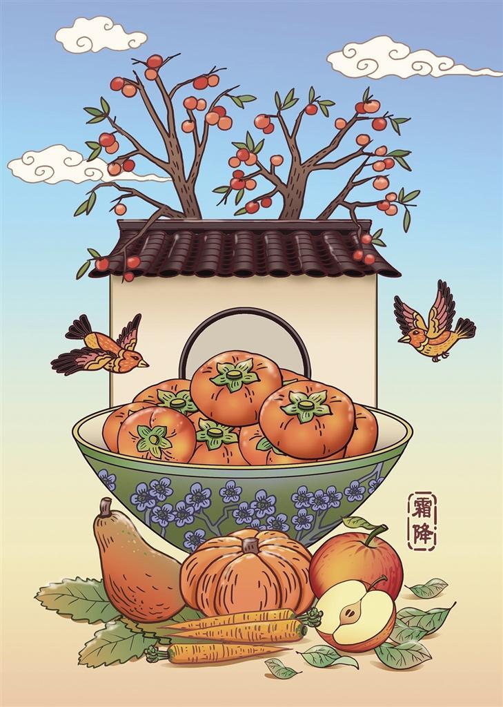 “對(duì)于節(jié)氣起源地區(qū)來說,‘霜降見霜花兒,立冬見冰碴兒’。”宋英杰表示:“雖然民間仍稱霜降為‘下霜了’,但在漢代,人們便已知曉霜是‘其由地發(fā),不從天降’的道理。因此,霜并非從天而降,而是遇物而凝。當(dāng)近地面的溫度低于0℃時(shí),水汽凝結(jié)成晶瑩的霜花或冰針。我們以‘凌霜做雪’形容性情的堅(jiān)韌,以‘飽經(jīng)風(fēng)霜’形容歲月的磨礪。‘風(fēng)刀霜?jiǎng)?rsquo;,霜被描述成一種鋒利的冷兵器,成為‘殺’的代名詞。”