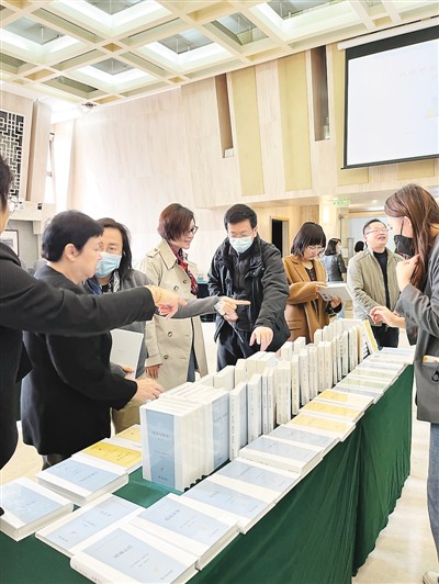 中場(chǎng)休息,與會(huì)專家學(xué)者圍著叢書第一輯熱烈交談。