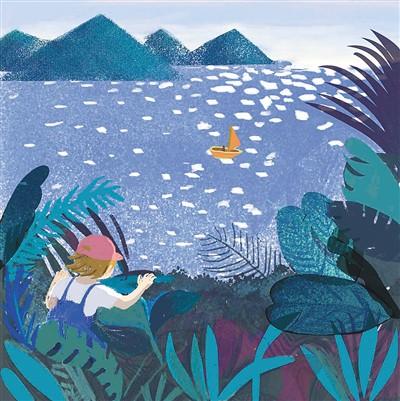 在遠(yuǎn)離故鄉(xiāng)的城市里,我的心無處可去。身處故鄉(xiāng)的時候,我們總眼望遠(yuǎn)方,“然而/那未知的風(fēng)景才是我向往的/哪怕它已落花滿地/哪怕它已人去樓空”。我喜歡這四句,因?yàn)樗欠N平靜而堅決的向往,寥寥幾句卻直透人心。這首詩的配圖是樹叢中的孩子遠(yuǎn)眺平靜湖面上一艘小船,粼粼的湖面像藍(lán)灰色的操場一樣平實(shí),就像無聲的邀請。但當(dāng)我們走到遠(yuǎn)方,故鄉(xiāng)又會成為心頭揮之不去的念想。