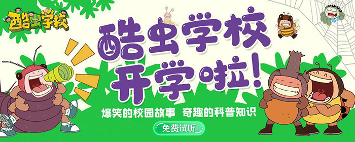 根據(jù)原創(chuàng)昆蟲科普知識(shí)爆笑校園漫畫改編的《酷蟲學(xué)??破沼新暪适隆?,以爆笑幽默的校園故事、新奇有趣的科普知識(shí)、廣播劇標(biāo)準(zhǔn)的精心制作等特點(diǎn),激發(fā)小讀者對(duì)大自然的熱愛,建立生態(tài)文明的宏觀觀念。