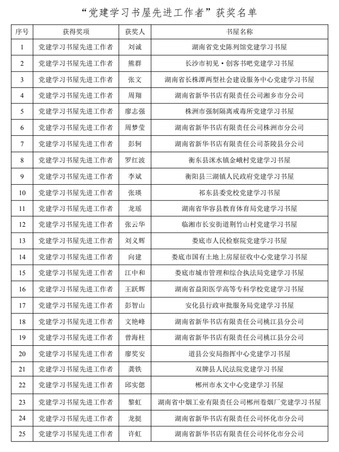 2021年度湖南“最美黨建學(xué)習(xí)書屋”揭曉