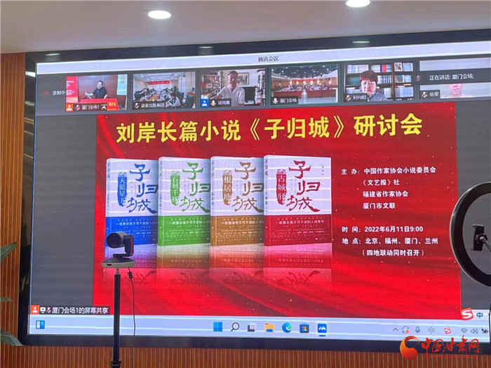 中國甘肅網(wǎng)6月12日訊 (本網(wǎng)記者 張?zhí)m琴)作為敦煌文藝出版社目前出版的“重量級”圖書,劉岸長篇小說《子歸城》受到國內(nèi)各領(lǐng)域關(guān)注和好評。6月11上午,劉岸長篇小說《子歸城》研討會在北京、福州、蘭州、廈門四地,以線上線下聯(lián)動的方式舉行。