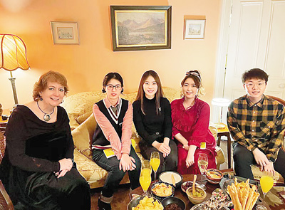 跨文化交流在學(xué)子的日常生活中頗為常見。張婧瑄在當(dāng)?shù)亟Y(jié)識(shí)了一對(duì)愛爾蘭夫婦,老爺爺是一位“資深中國(guó)迷”。“這位老人去過(guò)北京并喜歡上了中國(guó)文化,圣誕節(jié)時(shí),他和妻子邀請(qǐng)我和幾位朋友到家中慶祝。”令張婧瑄驚訝的是,在老人家里,她看到許多中國(guó)風(fēng)的收藏品。“有國(guó)畫、書法作品、中山裝等,老爺爺還和我們聊起他在北京的故事,還說(shuō)對(duì)故宮、胡同印象深刻,想再去看看。”