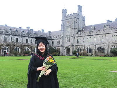 王藝晨在愛爾蘭科克大學(xué)碩士畢業(yè)時(shí)留影。