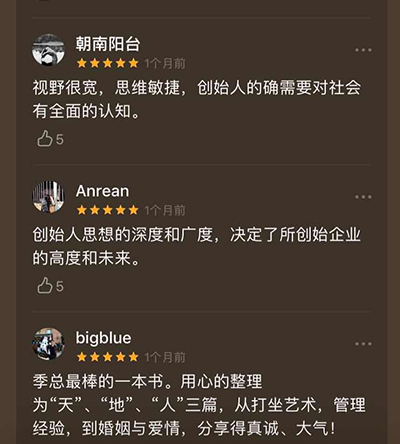 這本書(shū)可以讓讀者了解具有代表性的中國(guó)60后企業(yè)家的不同面向,既能從季琦的成功經(jīng)驗(yàn)中獲取養(yǎng)分,也能從他的人生哲學(xué)和生活美學(xué)里汲取能量。
