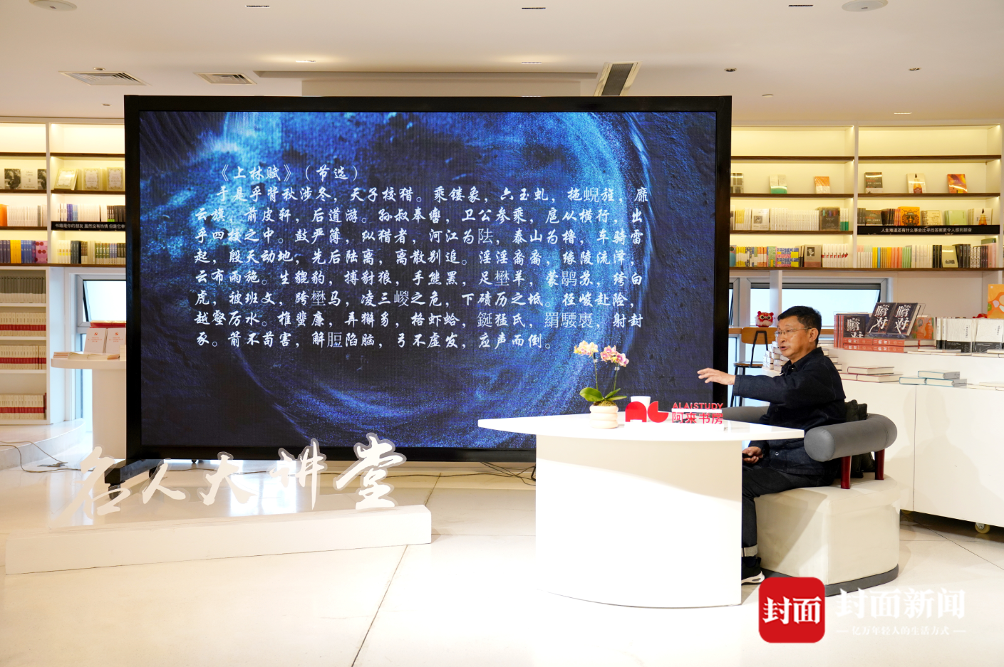 作為資深作家,阿來在講述司馬相如其人以及他所處的時(shí)代特點(diǎn)、文史知識同時(shí),還重點(diǎn)從文學(xué)的角度,講解了相關(guān)文史記載文章,還特別以《子虛賦》《上林賦》等司馬相如的作品為例,逐字逐句進(jìn)行分析“賦”這個(gè)文體的優(yōu)、缺點(diǎn)。比如在《上林賦》中,司馬相如寫楚國之子虛先生出使齊國,子虛向?yàn)跤邢壬v述隨齊王出獵,齊王問及楚國,子虛極力鋪排楚國之廣大豐饒,以至云夢不過是其后花園之小小一角。烏有不服,便以齊國之大海名山、異方殊類,傲視子虛。
