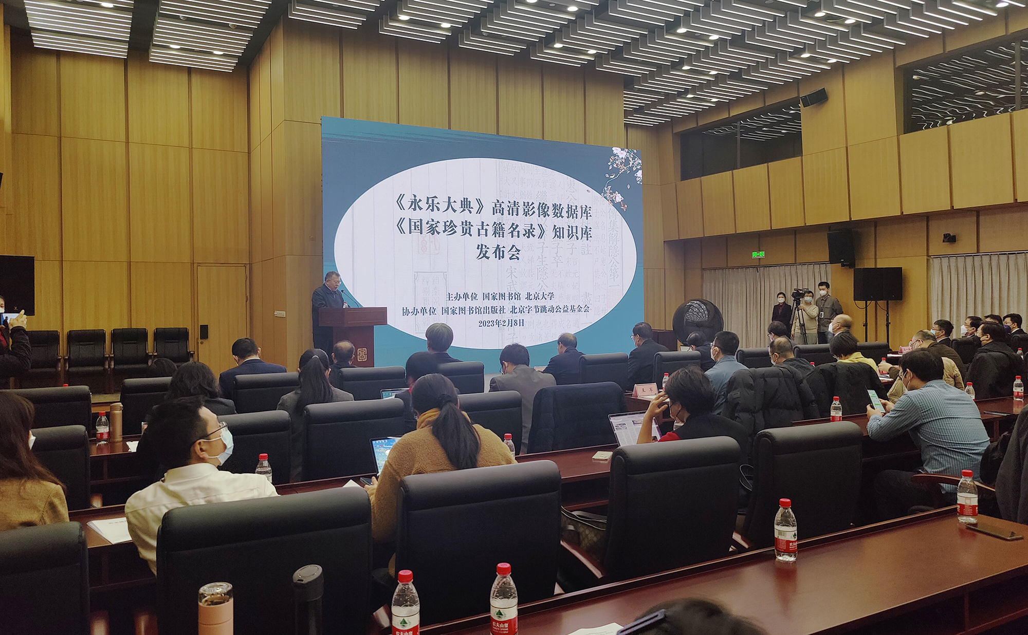新華網(wǎng)北京2月9日電(李然)2月8日,“《永樂大典》高清影像數(shù)據(jù)庫”及“《國家珍貴古籍名錄》知識庫”在國家圖書館發(fā)布。發(fā)布會由國家圖書館(國家古籍保護(hù)中心)聯(lián)合北京大學(xué)主辦,國家圖書館出版社和北京字節(jié)跳動公益基金會協(xié)辦。文化和旅游部黨組成員、副部長饒權(quán),北京大學(xué)黨委書記郝平,中宣部出版局局長馮士新,國家圖書館館長、國家古籍保護(hù)中心主任熊遠(yuǎn)明,北京大學(xué)副校長王博,北京字節(jié)跳動公益基金會副理事長兼秘書長李濤出席活動。專家學(xué)者代表、數(shù)據(jù)庫建設(shè)項目組成員代表、部分新聞媒體代表等參加會議。會議由國家圖書館常務(wù)副館長、國家古籍保護(hù)中心副主任張志清主持。