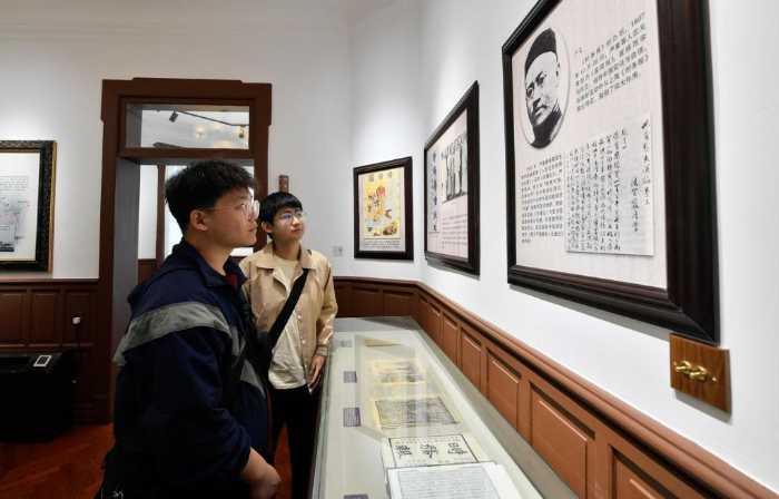 4月30日,游客在梁?jiǎn)⒊o(jì)念館內(nèi)參觀。新華社記者孫凡越攝
