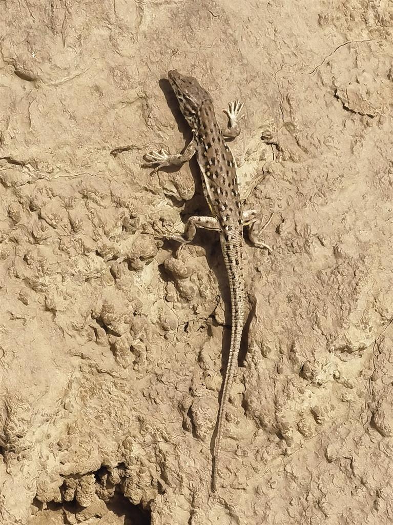 即將到達(dá)山頂,腳底下發(fā)現(xiàn)了亂竄的小蜥蜴。這是當(dāng)?shù)爻R?jiàn)的一種小蜥蜴,就是壁虎,當(dāng)?shù)厝朔Q(chēng)為蝎虎子、七寸子。土皮色,半厘米粗,5至10厘米長(zhǎng),跑的很快,有很強(qiáng)的自我保護(hù)意識(shí)。若被人或獵食者抓住尾巴,會(huì)主動(dòng)斷掉尾巴逃跑,后在不到一個(gè)月的時(shí)間內(nèi),長(zhǎng)出新尾巴。盡管有此本領(lǐng),但往往還是鷹和烏鴉等食肉飛禽及蛇的獵物。