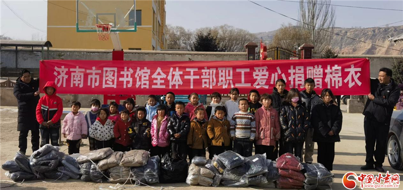 濟(jì)南市圖書(shū)館為積石山縣滿(mǎn)陳家村小學(xué)捐獻(xiàn)愛(ài)心棉衣