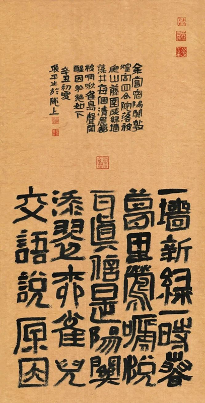 張平生是“詩(shī)人中的書法家,是書法家中的詩(shī)人”,是真正實(shí)現(xiàn)“我筆寫我文”的為數(shù)不多的“藝文兼?zhèn)?rdquo;型書法家。他的的書法,充分發(fā)揮“二爨”優(yōu)勢(shì),上溯漢碑簡(jiǎn)牘,把三者的風(fēng)格重新優(yōu)化組合,生發(fā)出新的系列,活化了“二爨”在當(dāng)代的創(chuàng)作形態(tài),獲得廣泛贊譽(yù)。