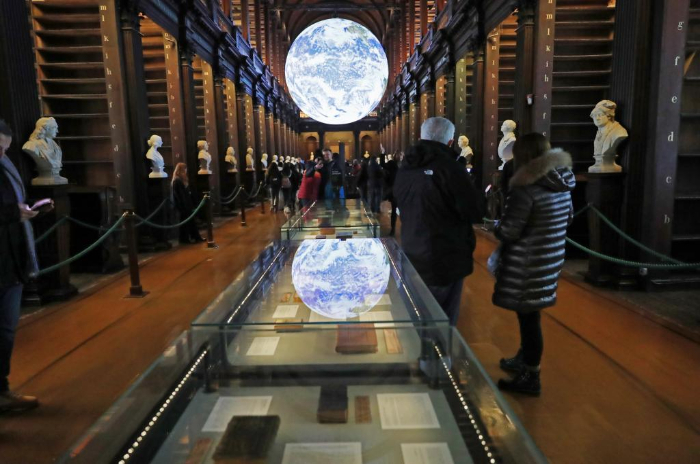 人們在愛爾蘭都柏林大學圣三一學院老圖書館內參觀(1月16日攝)。