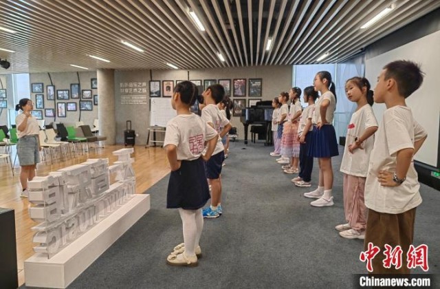 寧波圖書館的“天一童藝”公益項(xiàng)目現(xiàn)場,孩子們跟著老師學(xué)唱由《千字文》改編的歌曲。 中新網(wǎng)記者 應(yīng)妮 攝