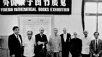 1980年,施普林格出版社在北京一個(gè)數(shù)學(xué)研討會(huì)上舉辦外國(guó)數(shù)學(xué)圖書展,出席者包括著名數(shù)學(xué)家吳文俊(左二)、陳省身(左四)和江澤涵(右三)。作者供圖