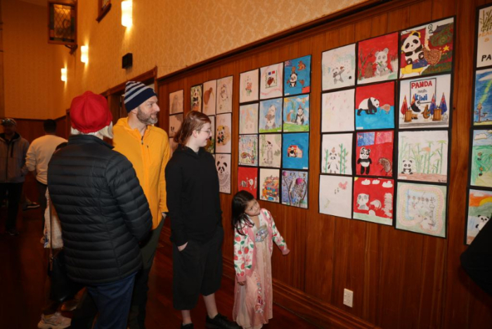 8月10日,在新西蘭懷帕市,人們?cè)?024中國(guó)主題圖書(shū)展暨“大熊貓遇見(jiàn)幾維鳥(niǎo)”中國(guó)新西蘭國(guó)際青少年藝術(shù)展上參觀。新華社發(fā)(孫學(xué)良 攝)
