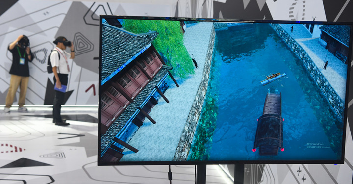 9月21日,觀眾在第十四屆中國國際數(shù)字出版博覽會上體驗大運河VR沉浸式研學空間。 新華社記者 楊冠宇 攝