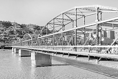 以百年時(shí)間看黃河,《黃河中國(guó)》彰顯黃河古文明之上崛起的現(xiàn)代文明。在書中我特意寫了三座百年黃河鐵橋,它們分別是蘭州黃河鐵橋、鄭州平漢鐵路黃河橋和濟(jì)南濼口黃河鐵路橋。一百年放置在歷史長(zhǎng)河里不算長(zhǎng),卻是一個(gè)較為合適的觀照近現(xiàn)代中國(guó)發(fā)展的時(shí)間點(diǎn)。從擺渡、繩渡到石橋、木橋、浮橋、鐵路橋、公路橋,橋梁建筑史的發(fā)展足以證明人類社會(huì)的進(jìn)步。黃河上最初修建鐵橋的歷史在晚清末年,正是中華民族處于內(nèi)憂外患之際,光緒二十六年(1900)清政府決定修建平漢黃河鐵路橋,這是黃河上的第一座鋼鐵建筑,然而在1938年抗戰(zhàn)烽火中,為阻擋日軍進(jìn)攻,被炸毀了,現(xiàn)在只剩下5孔橋墩。以5孔橋墩存在的黃河第一座鐵橋,象征著黃河上現(xiàn)代工業(yè)文明的興起與民族深深的精神創(chuàng)傷。如今80多年過(guò)去了,鄭州地段已經(jīng)修建了十余座黃河橋,每一座都很現(xiàn)代很漂亮。自新中國(guó)成立以來(lái),黃河安瀾75年,從戰(zhàn)火紛飛到國(guó)泰民安,黃河是國(guó)家昌盛、民眾幸福的最好見(jiàn)證者。
