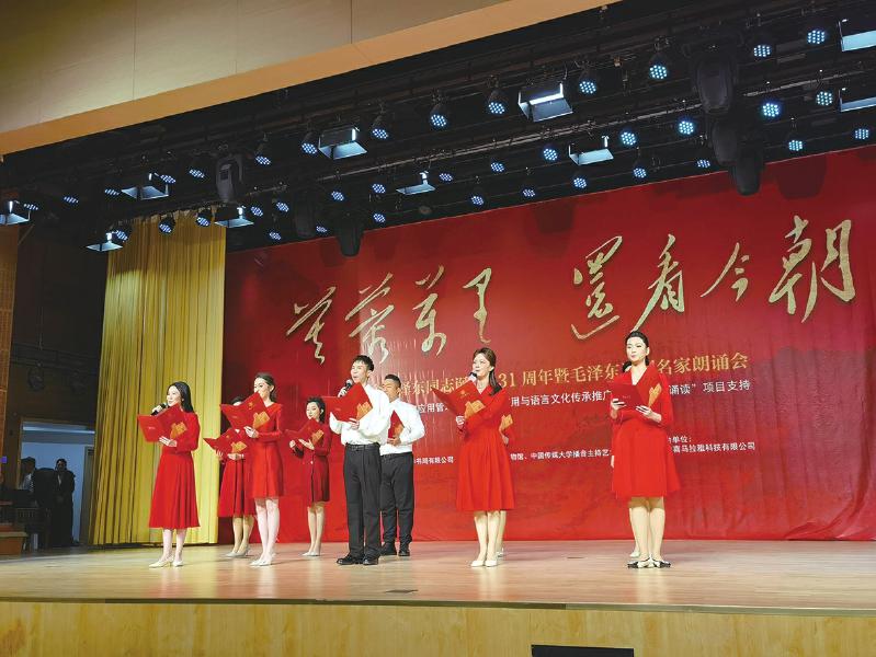 朗誦會上,中國傳媒大學(xué)學(xué)生誦讀毛澤東同志詞作《沁園春·長沙》。 本報記者 章紅雨 攝