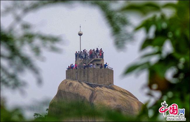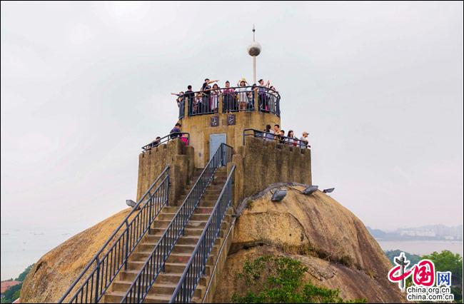 說到自然風(fēng)光,便不能不提日光巖——這島上的最高峰。日光巖別名“晃巖”,相傳1641年,鄭成功來到此地,見此地風(fēng)景勝過吉林日光山,便把“晃”字拆開,稱之為“日光巖”。要登臨此巖,一窺日光,便要辛勞走一段山路。其間渾圓的巨石層出不窮,蒼郁的古樹隨處可見,更有閩南大厝、名人題字與這些自然風(fēng)景相得益彰。于是游人往往在心曠神怡中,路過“九夏生寒”“鷺江龍窟”,經(jīng)由“閩海雄風(fēng)”“古避暑洞”,不知不覺間,來到巖頂?shù)钠脚_。立定此處,憑欄遠(yuǎn)望,只見輕靈的云天近在咫尺,島上的屋宇盡收眼簾——別提有多么愜意!難怪有詩人寫道:“一葉輕舟破霧霾,波濤滾滾此登臺。日光巖上憑欄望,隔岸清風(fēng)過海來。”(陳仁德句)
