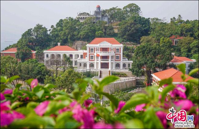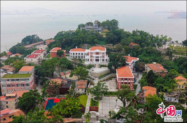 如果有這樣一座島嶼——遠(yuǎn)處是一方寧靜的藍(lán)天,近處是一片幽深的綠樹,藍(lán)與綠之間,是逶迤而去的清水紅磚……極目遠(yuǎn)眺,只見她濃淡相宜、遠(yuǎn)近相安,仿佛一幅肅穆祥和的印象派油畫;細(xì)細(xì)聆聽,似乎還有一支悠揚(yáng)的鋼琴曲,在伴隨海鷗與濤聲,不時從畫中飄來……