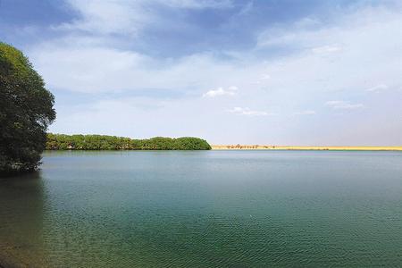 在渥洼池畔舉目遠眺,在阿爾金山皚皚白雪的映襯下,偌大的渥洼池顯得安靜祥和,廣闊的水域就像一面鏡子,鑲嵌在大漠深處,在陽光的折射下顯得格外深邃而內(nèi)斂。渥洼池畔茂密的灌木林和高大密集的蘆葦蕩,將一汪湖水浸染的泛著黛綠,蘆葦和灌木在湖水滋潤下郁郁蔥蔥,高低錯落有致,大有阡陌縱橫之勢。西岸不遠處,南北迤邐著一座兩公里有余的沙坡頭,猶如一條盤旋的黃龍,亙在湖水的西邊搖頭擺尾,它曾經(jīng)以每年兩至三米的速度,肆無忌憚地向渥洼池水域逼進。不過,在陽關保護區(qū)的精心培育下,一片密集的蘆葦,已經(jīng)爬到了沙梁頂上,將這條黃龍死死地鎖在原地,動彈不得。