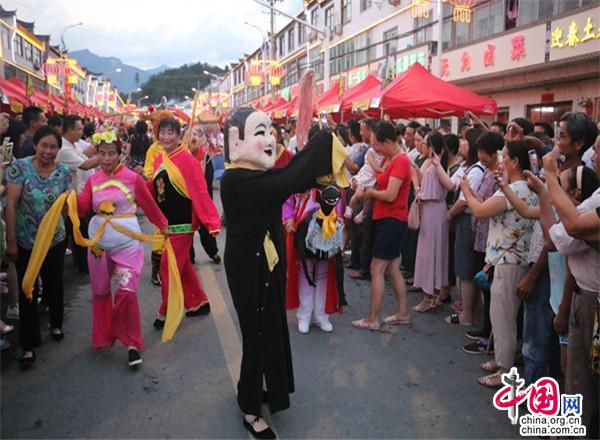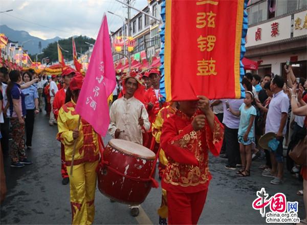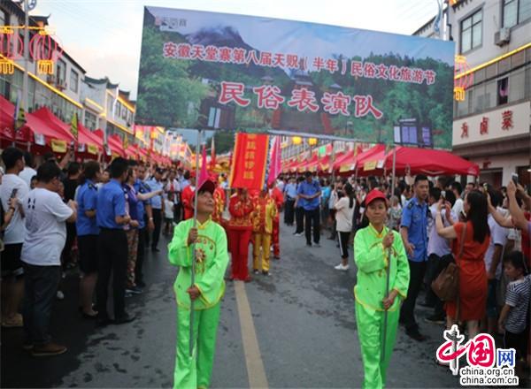 小鎮(zhèn)很熱鬧。小鎮(zhèn)現(xiàn)已入駐了十幾家大型連鎖超市,500多家賓館飯店,300多家購物店。每到雙休日,操著各色口音的四海賓客在街上蹓跶、徜徉,或在超市購物店里選購精美的土特產(chǎn),或在酒店里品嘗著山珍野味,或在KTV里痛快豪嗓,或圍著篝火歡歌勁舞,有的干脆就光著膀子在露天的小吊鍋前劃拳行令,恣意灑脫,好不愜意。每年農(nóng)歷六月初六,天堂寨都要舉辦隆重的天貺節(jié),天堂寨鎮(zhèn)政府門前的一公里主街道兩邊擺起了長龍似的紅色帳篷,“百家吊鍋宴”成為中外游客免費(fèi)品嘗天堂寨美食的饕餮盛宴。人們一邊喝著小吊美酒,吃著山珍美味,一邊欣賞著穿街而過的威風(fēng)鑼鼓、騰龍舞獅、儺戲花船、獨(dú)輪推美女、花棍打癡郎等不斷推陳出新的民俗風(fēng)情表演。酒足飯飽之后,再到政府廣場觀看精彩紛呈的文藝節(jié)目。一時(shí)間,人山人海,把一個(gè)千米“長街”擠得水泄不通;歡聲笑語,把一個(gè)深山小鎮(zhèn)匯成了歡樂的海洋……