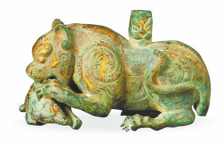 青銅鎏金虎噬羊形器座 甘肅省博物館藏