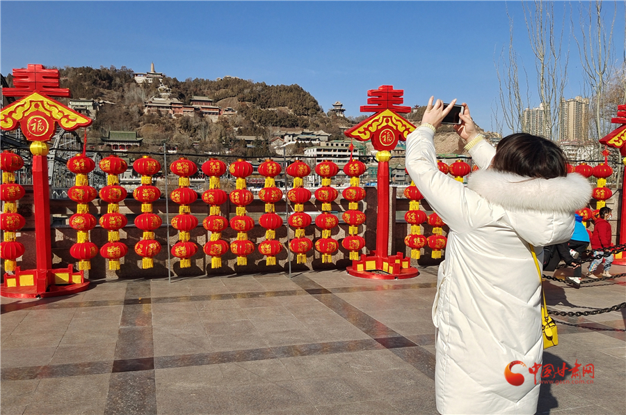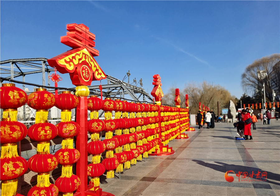 中國紅更配中國年,2月3日,記者在蘭州中山橋看到,中山橋廣場完成了節(jié)日亮化,火紅的燈籠搭配春天的裝飾,讓百年鐵橋在喜慶中迎接新春,吸引游客前來打卡拍照。