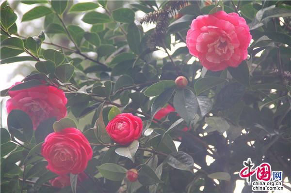 云南羅平小寨山茶花爭奇斗艷 生態(tài)園百花齊放