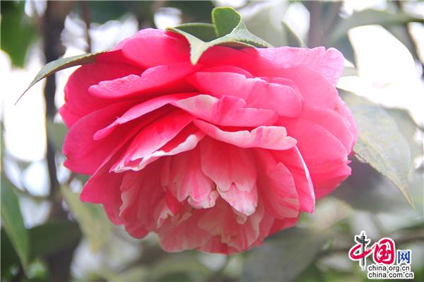 一輪艷陽照四方,一席春風(fēng)綠千山。山茶花是中國傳統(tǒng)名花,也是世界名花之一。2月21日,朋友相約,從縣城出發(fā),約8公里就進(jìn)入九龍生態(tài)園,姿態(tài)各異的山茶花已進(jìn)入盛花期,樹姿虬勁優(yōu)美,綠葉四季不凋,一朵一朵的茶花大如牡丹,燦如云霞,風(fēng)姿綽約,耀眼生輝!植株形姿優(yōu)美,葉濃綠而光澤,花形艷麗繽紛,美艷了。有的鮮紅如火、有的嬌羞染粉、有的晶瑩潔白……滿園茶花勝景。不經(jīng)意間清風(fēng)吹過,暗香徐來,朵朵花兒隨風(fēng)舞。陽光穿透葉子的縫隙,落在花間小道上,花香彌漫整個(gè)鼻腔,放低自己,品味花香,眼里有花、心里有花,人生就會(huì)像花一樣美麗。