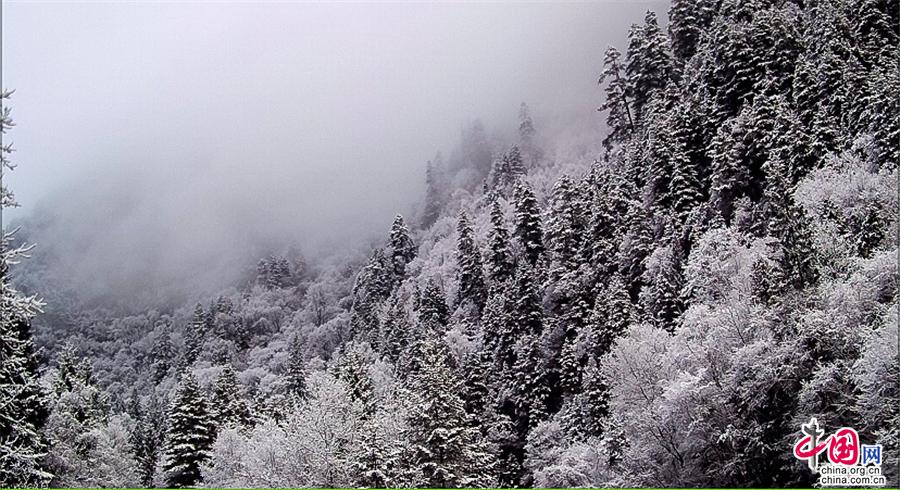 大雪紛飛 快來達(dá)古冰川賞春天的第一次雪吧