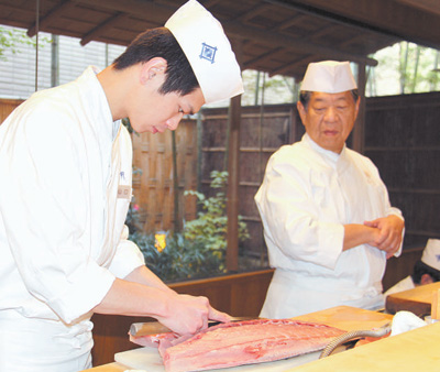 日本一名年輕和食廚師正在學(xué)習(xí)處理食材。記者 劉軍國(guó)