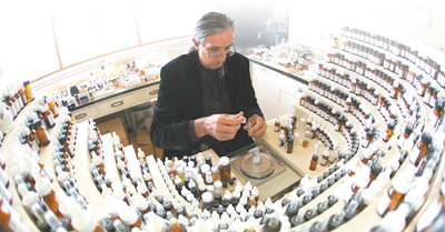 法國(guó)一名專業(yè)調(diào)香師在配制香水。資料圖片