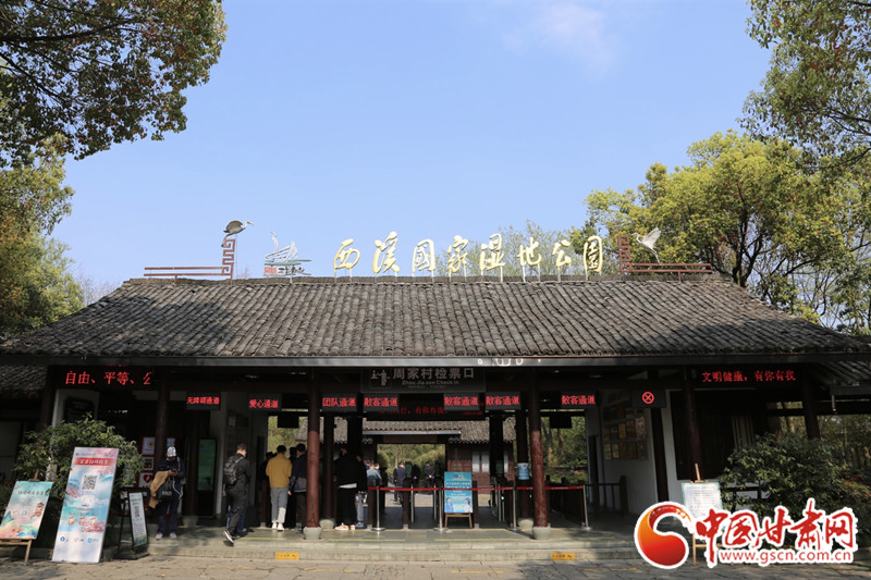 游客進入杭州西溪國家濕地公園游覽