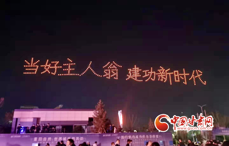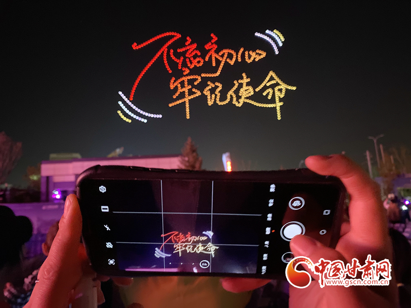活動現(xiàn)場,千架無人機編隊以天空為幕,以“熒光”為筆,在金城上空分別繪就“慶祝中國共產(chǎn)黨成立100周年”“蘭州鐵橋”“奧體中心”等數(shù)幅壯美畫面,集中反映近年來蘭州市在經(jīng)濟社會領域取得的成就。