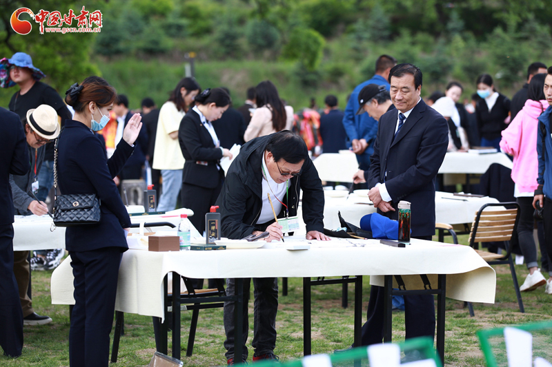作為平?jīng)鲠轻嘉幕糜喂?jié)的一項重要活動,來自全國各地共計30余名書畫家在參加完書畫名家精品展開幕式后,深入華夏古槐王景區(qū)采風并現(xiàn)場揮毫潑墨,用水墨丹青為崇信“留影”,用詩情畫意細述崇信故事?;顒蝇F(xiàn)場氣氛熱烈,書畫家們筆走龍蛇、各展所長,創(chuàng)作了多幅描繪崇信風貌的書畫作品。他們或顏筋柳骨、筆力遒勁,或妙筆丹青、氣韻生動,贏得了現(xiàn)場嘉賓嘖嘖稱贊。
