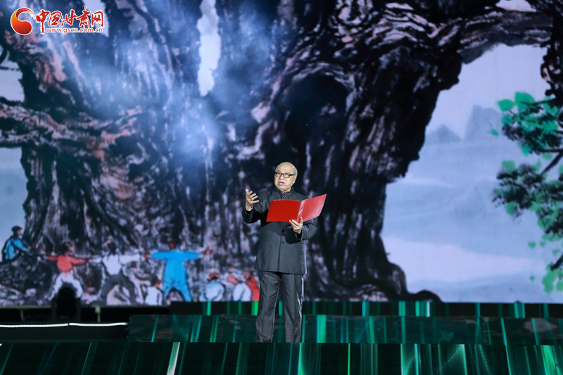 開幕式之后的“水墨關(guān)山·槐蔭天下”晚會(huì),以“黃·紅·綠”三色歷史篇章新理念,展現(xiàn)平?jīng)鰷嫔>拮兊臍v史發(fā)展新格局。晚會(huì)以童謠《大槐樹謠》開場(chǎng),展現(xiàn)了屹立于崇信山坳中的大槐樹,歷經(jīng)3200歲風(fēng)雨,矗立成為民族精神的象征。非遺表演唱《弦子腔》+《崇信民歌》展現(xiàn)了崇信人民延續(xù)農(nóng)業(yè)生態(tài)精神,演繹對(duì)真善美的追求。還有書畫頻道的書畫家們現(xiàn)場(chǎng)通力合作,激情創(chuàng)作,專門為崇信人民創(chuàng)作了兩幅丈二畫作——《雄峙千秋》《公劉與崇信》,為本場(chǎng)晚會(huì)添色添彩。