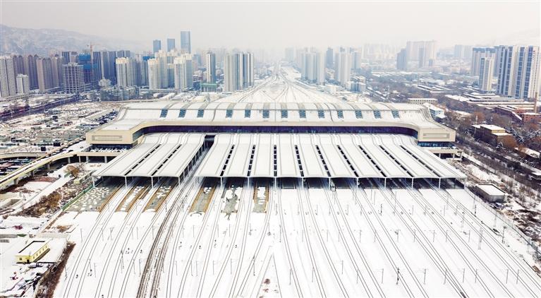 2月6日,在蘭州西站,鐵路線路隱沒在白雪之中。記者 馬軍 攝