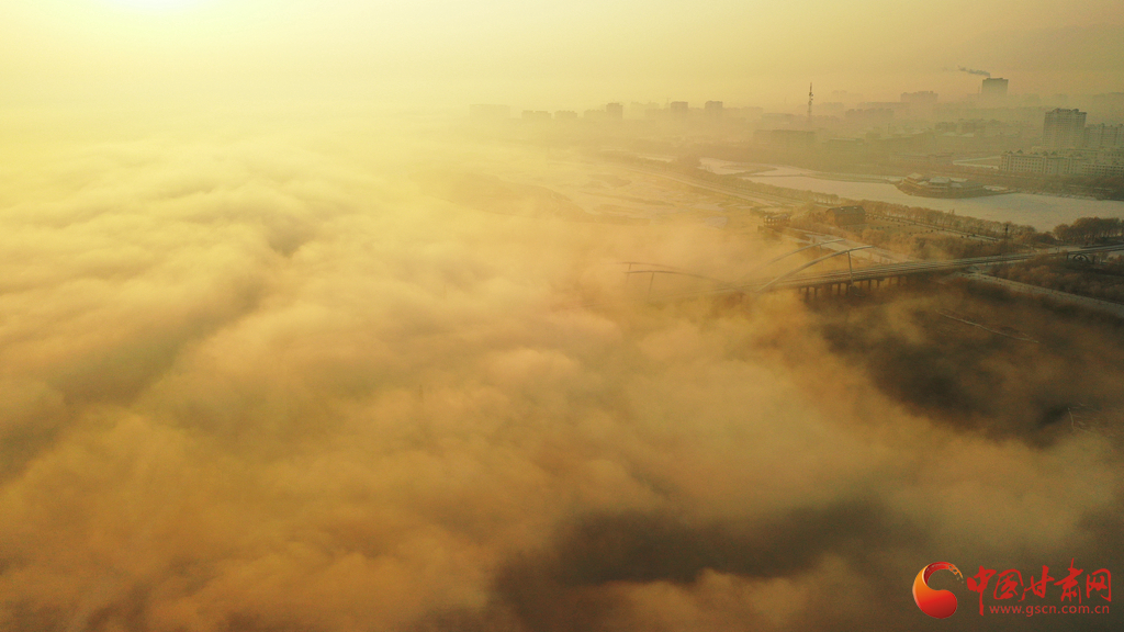 張掖市高臺(tái)縣黑河國(guó)家城市濕地公園上空的云海景觀。